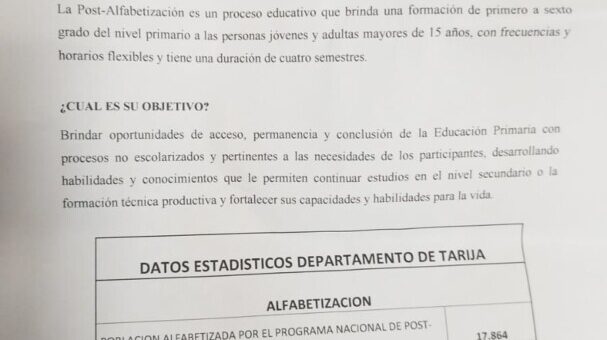 Uncategorized abril 19, 2023 EL PROGRAMA DE ALFABETIZACIÓN INVITA A LOS PROFESIONALES A PARTICIPAR COMO CAPACITADORES El Ministerio de Educación ha lanzado un nuevo programa de alfabetización para personas mayores de 15 años. Beatriz Vaca, responsable... 0 0CompartirTwittear0 Compartir