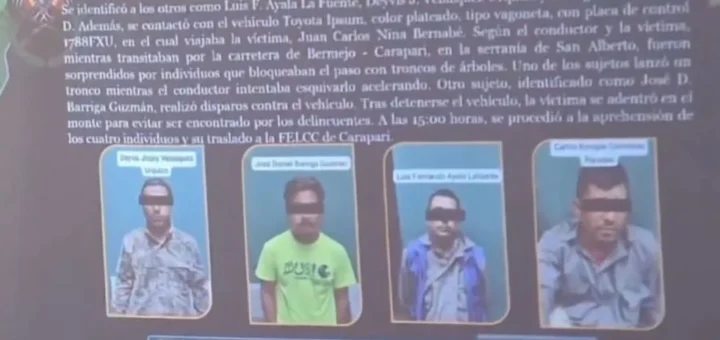 Uncategorized abril 5, 2024 CAPTURAN A CUATRO MIEMBROS DE BANDA DE DELINCUENTES EN YACUIBA TRAS VIOLENTO INTENTO DE ASALTO A UN LIBRE CAMBISTA La tarde del miércoles, la policía desmanteló una organización delictiva dedicada a asaltos en Yacuiba, después de un violento intento... 0 0CompartirTwittear0 Compartir