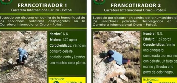 La Policía Boliviana publicó este jueves los afiches de búsqueda de las dos personas de sexo masculino que atacaron con disparos...