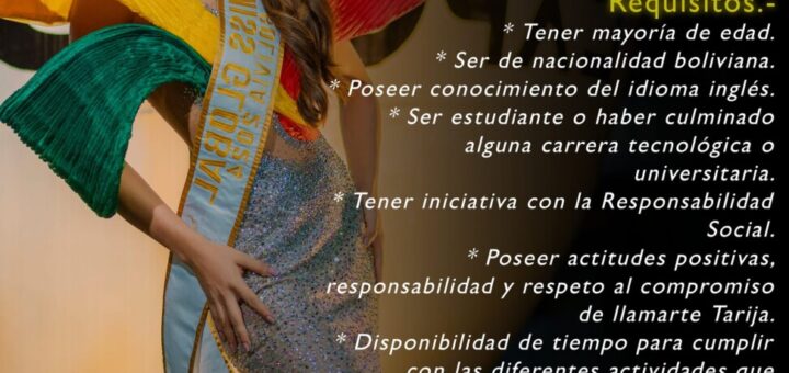 Uncategorized noviembre 22, 2024 LANZAN CONVOCATORIA PARA MISS TARIJA, SEÑORITA TARIJA Y MISS ANDALUCÍA 2025 La organización del Miss Tarija ha anunciado oficialmente la apertura de inscripciones para los certámenes de Miss Tarija, Señorita Tarija... 0 0CompartirTwittear0 Compartir