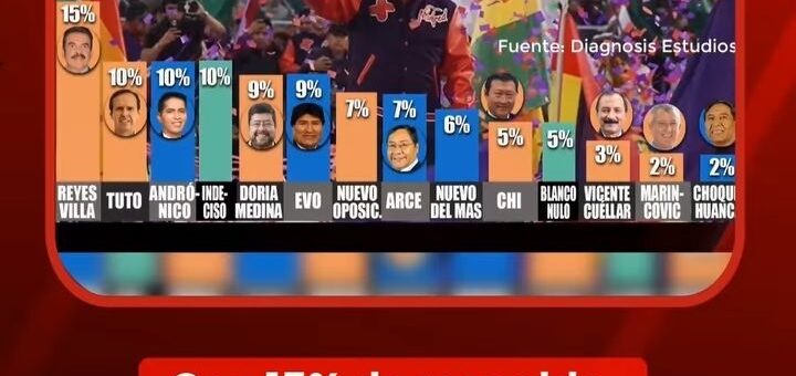 Uncategorized enero 23, 2025 ENCUESTA DE DIAGNOSIS: MANFRED LIDERA ENCUESTA CON UN 15% DE INTENCIÓN DE VOTO Según la encuesta de Diagnosis, el espacio electoral del Movimiento al Socialismo (MAS) ha disminuido significativamente, pasando del 43% en... 0 0CompartirTwittear0 Compartir