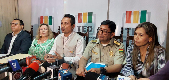 Uncategorized octubre 18, 2025 TED TARIJA, POLICÍA, JUSTICIA Y FISCALÍA ACTIVAN PLAN CONJUNTO PARA UN BALOTAJE SEGURO Y ORDENADO El presidente del Tribunal Electoral Departamental (TED) de Tarija, Óscar Gutiérrez, informó que el proceso electoral de este domingo se... 0 0CompartirTwittear0 Compartir