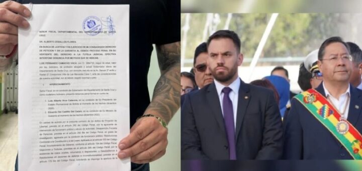 Uncategorized diciembre 30, 2025 GOBERNADOR CAMACHO PRESENTA DENUNCIA POR SECUESTRO EN CONTRA DE LUIS ARCE Y EDUARDO DEL CASTILLO El abogado del gobernador cruceño Luis Fernando Camacho, Martín Camacho, informó que se presentó una denuncia penal contra el expresidente... 0 0CompartirTwittear0 Compartir