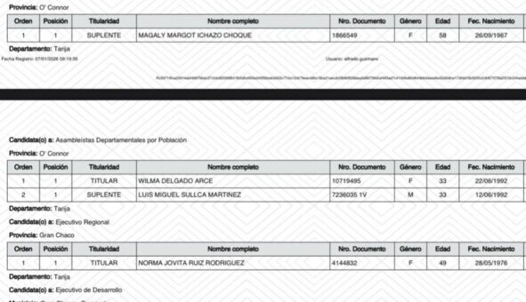 Uncategorized enero 9, 2026 SUBNACIONALES 2026: TSE PUBLICA LISTA COMPLETA DE CANDIDATOS HABILITADOS EN TARIJA El Tribunal Supremo Electoral (TSE) publicó el Reporte General de Candidatas y Candidatos Habilitados, con fecha 7 de enero de... 0 0CompartirTwittear0 Compartir