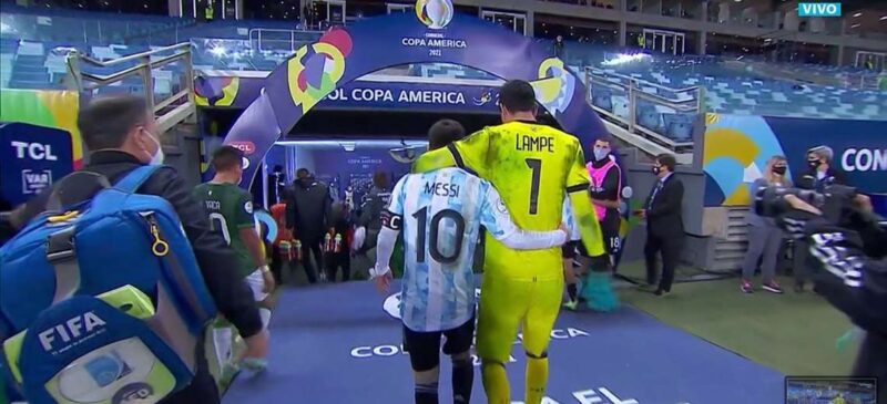 Tras el encuentro, en las redes se viralizaron fotos que muestran al arquero boliviano y al considerado mejor jugador del mundo hasta abrazados saliendo del campo. En el medio del partido, incluso, Lampe robó una sonrisa al ’10’ argentino antes de que éste pateara el penal que significó el 2-0 transitorio.