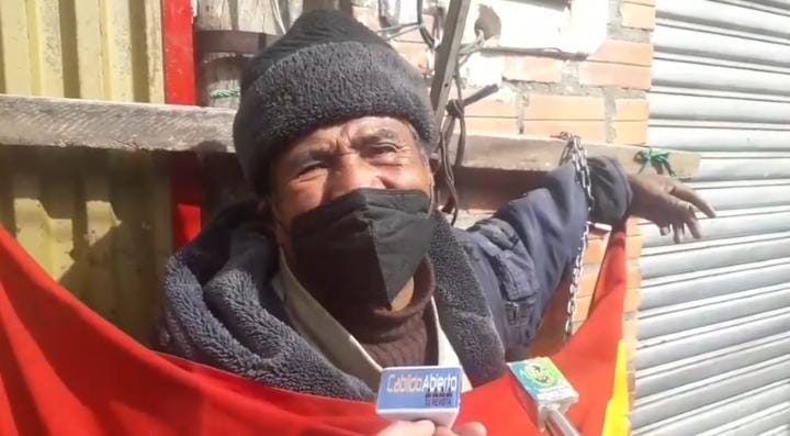 ANCIANO SE CRUCIFICA Y DENUNCIA QUE INTENTAN QUITARLE SU CASA EN EL ALTO