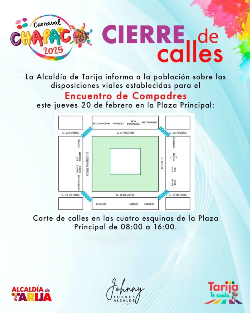 CIERRE DE CALLES Y MEDIDAS DE SEGURIDAD PARA EL JUEVES DE COMPADRES EN TARIJA