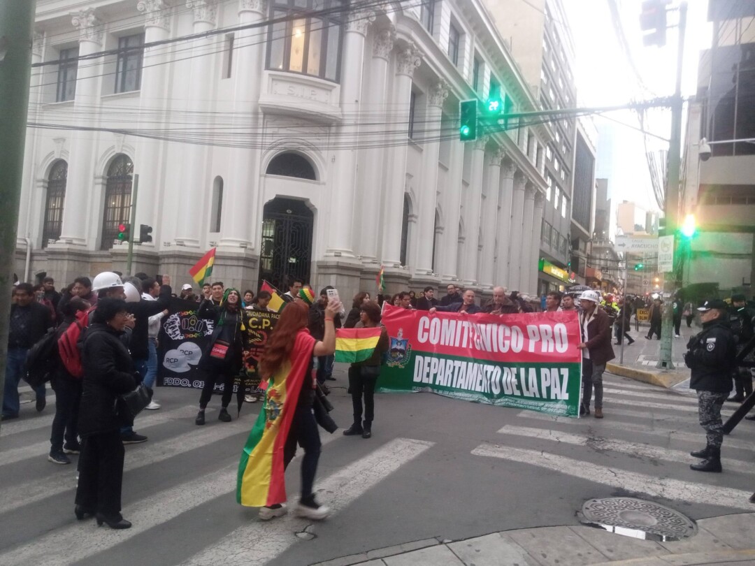 El Comité Cívico pro Departamento de La Paz realizó una marcha por el centro de la ciudad para expresar su rechazo a la postura del vicepresidente Edmand Lara, a quien consideran en clara oposición a la gestión de Gobierno. Durante la movilización, los representantes del Comité pidieron premura en la aprobación de la ley antibloqueo.