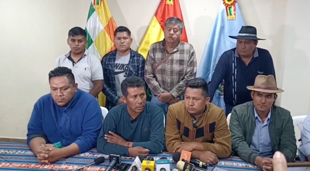 El dirigente campesino, Humberto Claros, informó en conferencia de prensa que la decisión de postergar la medida de presión se debe a la renuncia de las magistradas del Tribunal Agroambiental, Elva Terceros y Ángela Sanchez.