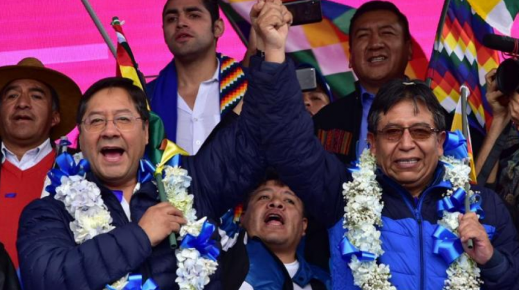 “Se ratificará al presidente Luis Arce Catacora y al vicepresidente jilata David Choquehuanca para que se postulen a una gestión más, (la de) 2025-2030. Los traidores que se escaparon y abandonaron a las bases y renunciaron el 2019 van a ser expulsados del MAS. Leales siempre, traidores nunca”, declaró Cuellar.