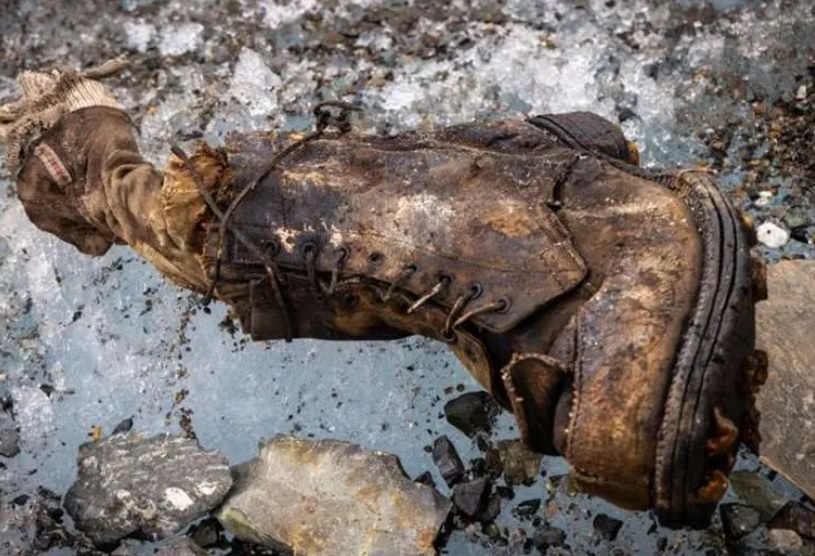El mes pasado, un equipo de alpinistas que filmaba un documental de National Geographic se topó con una bota que se conservaba allí y que apareció al derretirse el hielo de un glaciar.
