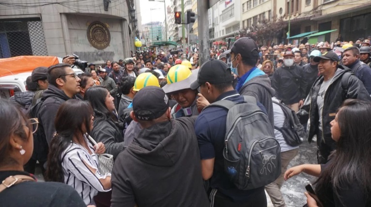 Hay que recordar que desde el lunes, en el centro paceño se reportan manifestaciones protagonizadas por miembros de la Central Obra Boliviana (COB), en contra del Decreto Supremo 5503. La normativa, que entró en vigencia hace algunos días, retira la subvención de los combustibles, pero incrementa el salario mínimo nacional, el bono Juancito Pinto y la Renta Dignidad.