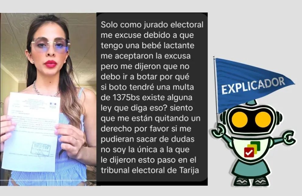 La presentadora de televisión Dayana Caro contó que fue sorteada como jurado electoral, pero que se excusó debido a que está a cargo de un bebé lactante de nueve meses. Seguidamente, denunció que su excusa fue aceptada, pero que le advirtieron que si acudía a votar el 17 de agosto de 2025, día de las elecciones generales, sería multada con Bs 1.375.