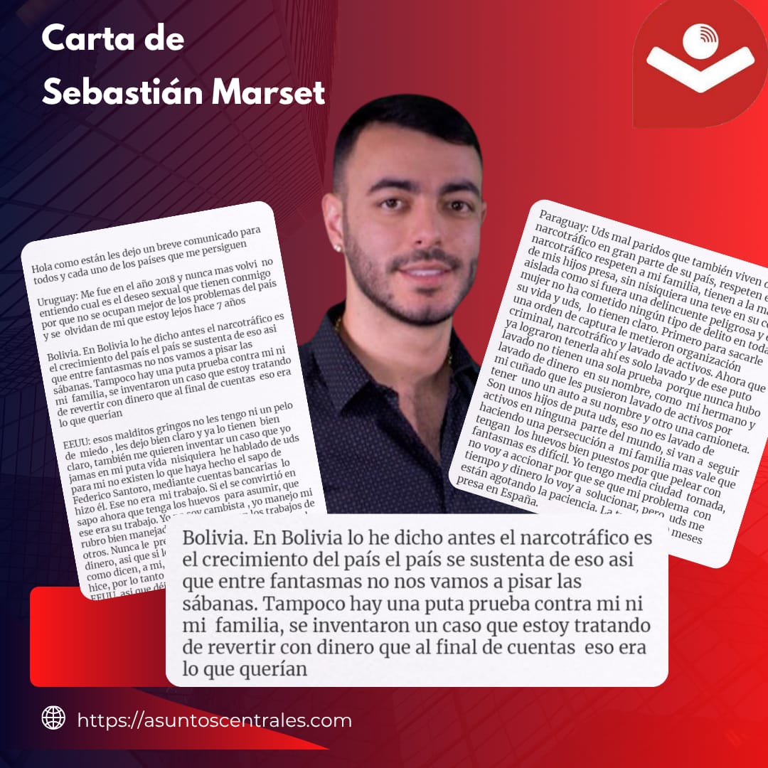 El uruguayo Sebastián Marset, que está en la lista de los cinco más buscados de la agencia antidroga DEA, se pronunció este martes a través de una carta en la que hace diversas acusaciones, amenazas, además de insultos que van dirigidos a los gobiernos de Bolivia, EEUU y Paraguay.