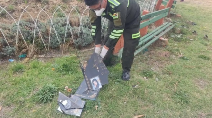 El sereno del camposanto alertó a la Policía tras observar a un sujeto sospechoso ingresar en horas de la noche al interior del recinto. Al llegar los efectivos policiales, constataron la destrucción de una lápida perteneciente a una mujer fallecida.