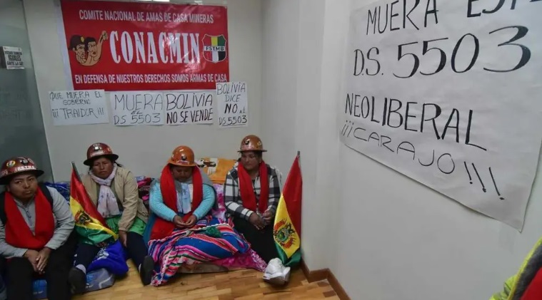 Las movilizaciones contra el Decreto Supremo 5503, encabezadas por la Central Obrera Boliviana (COB), escalonaron a otro nivel y este lunes se radicalizaron con la instalación de los primeros tres piquetes de huelga de hambre en la sede de Gobierno.