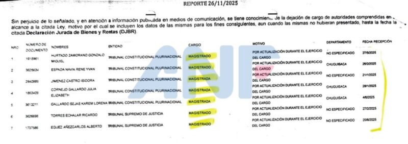 La diputada de Unidad, Andrea Ballivián, reveló la lista de alrededor de 800 exautoridades que están sujetas a la Ley de Arraigo, por la cual no pueden abandonar el país hasta tres meses después de dejar el cargo para evitar casos de posible impunidad en corrupción.
