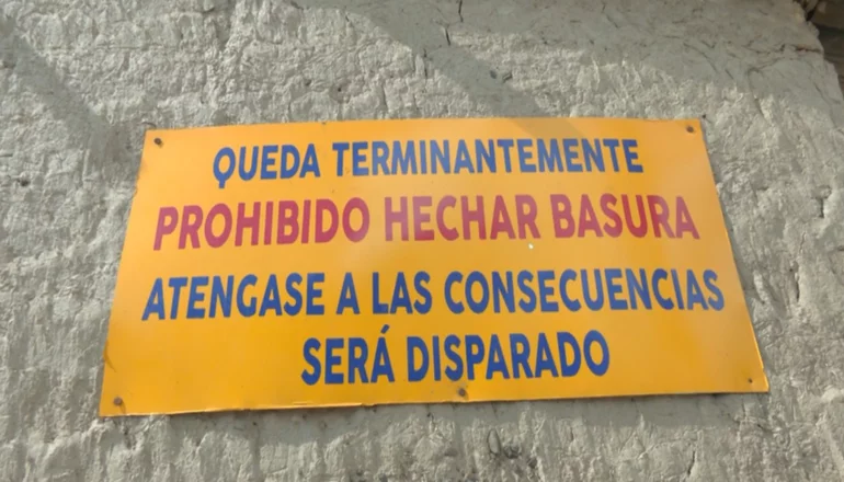 “Queda terminantemente prohibido echar basura. Aténgase a las consecuencias, será disparado”, es el llamativo letrero colocado en la pared de una de las casas, los vecinos remarcaron que no permitirán que vuelvan a dejar basura en sus calles, parques o plazas.