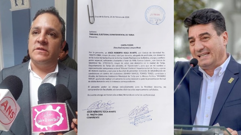 El presidente del Tribunal Electoral Departamental de Tarija, Dr. Carlos Martín Lema, informó que el pasado viernes se recibió una demanda de inhabilitación contra el ciudadano Johnny Torres Terzo, candidato a la Alcaldía.