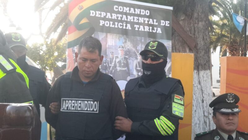 En una conferencia de prensa, la Policía presentó al principal sospechoso del feminicidio de María Gutiérrez, identificado como Bernabé Ortega Maraz, quien intentó escapar tras cometer el crimen. Ortega fue capturado en Uriondo, donde las autoridades encontraron dos armas de fuego y munición en su posesión.